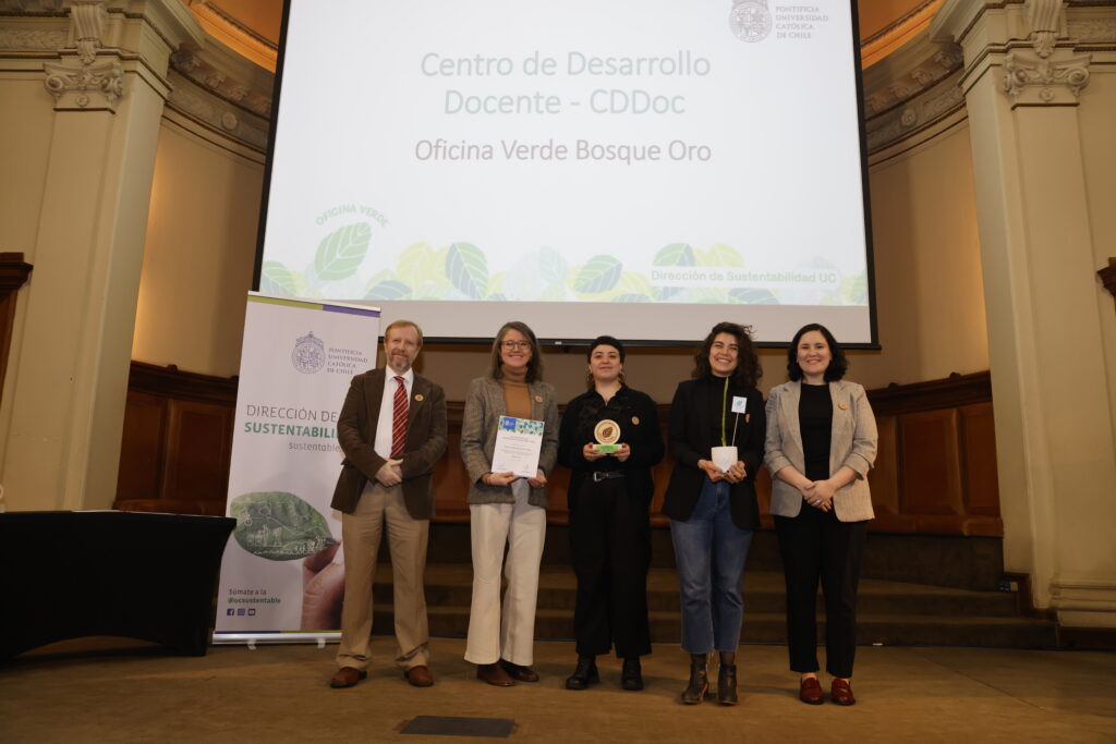 La Dirección de Sustentabilidad UC reconoció a las unidades pertenecientes al Programa Oficina Verde por su compromiso y acciones en materia de sustentabilidad. En esta ocasión, el CDDoc recibió la máxima categoría del programa, que distingue a las oficinas y unidades que más se destacaron por sus iniciativas durante 2024.
